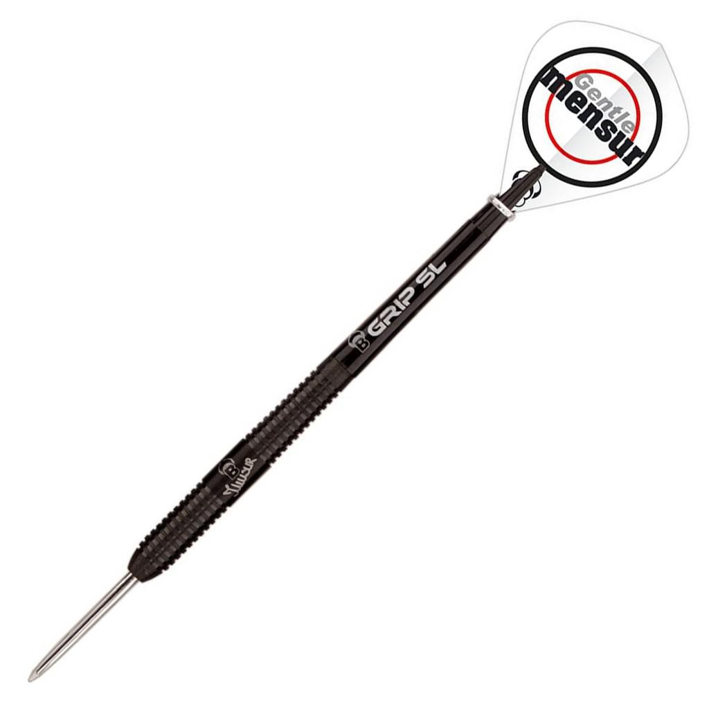Verfügbare Varianten: 21g 25g Die BULL'S Champions Darts von Mensur "The Gentle" Suljovic sind in Zusammenarbeit und nach den Anforderungen des BULL'S Player entwickelt worden. Die Barrels sind in herausragender 90% Tungsten Qualität und spezieller Black-Edition gefertigt, eine Gravur mit dem BULL'S Logo und der Spielersignatur. 2016 stieg Suljovic endgültig in die Oberliga der Darts Elite auf. Er gewann nicht nur seinen ersten PDC Titel sondern drang bis auf Platz acht der PDC Weltrangliste vor. Mensur "The Gentle" Suljovic ist seit 1997 ein BULL'S Team Member. Die Nr.1 aus Österreich hat bereits viele Internationale Titel, sowohl beim Steel Dart als auch beim Soft Dart gewonnen und zählt seit dem Jahr 2016 zur PDC Spitze. Mensur präsentierte seine "Black-Edition" BULL'S Champions Darts das erste mal in bei der "European Tour 2016" in Riesa, wodurch er sein ersten PDC Major Titel verdiente. Zu den Erfolgen von "The Gentle" zählt nicht nur der "European Tour 2016" Sieg in Riesa und die Finalteilnahme bei der "European Darts Championship 2016" in Hasselt, sondern auch die PDC Auszeichnung als "Most Improved Player of the Year 2016". Die Darts sind im handlichen BULL'S Cone Case mit schwarzen B-Grip SL Schäften und extra starken 5 Star Flights im speziellen "The Gentle" Design. Der Champion Mensur "The Gentle" Suljovic hat ein gerades Barrel mit Ringed-Grip. Zusätzlich hat das Barrel noch einen Bereich mit Micro-Ringed Grip am vorderen und hinteren Ende. Die Darts sind in 21gr. 23gr. und 25gr. erhältlich, Mensur Suljovic auswahl ist die 25Gr. Version der BULL'S Champions Pro-Steeldarts.Barrelmaße: Länge= 50,1 mm D1= 6,1 mm D2= 6,8 mm.